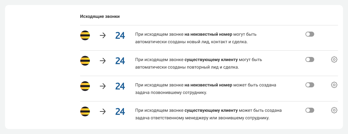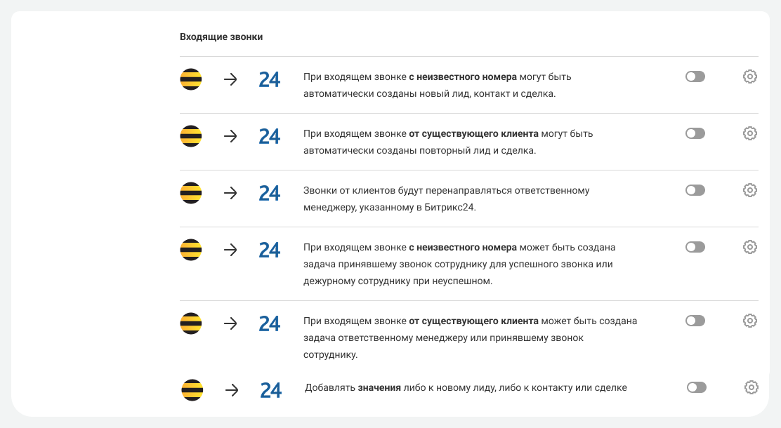 При этом для каждого типа звонка могут действовать свои правила интеграции.
