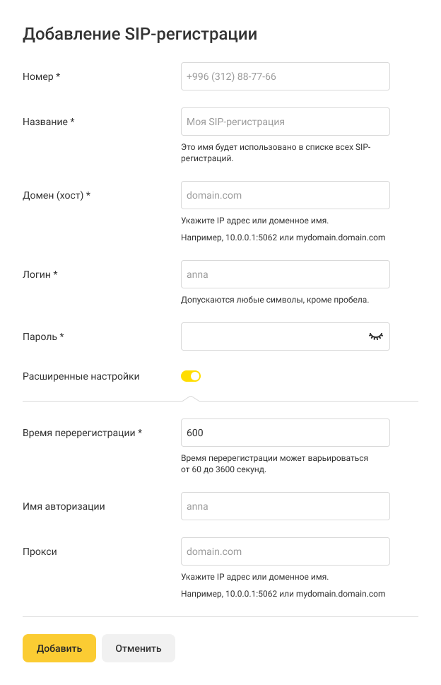 Шаг 2. Настройка SIP-регистрации в calltracking.ru