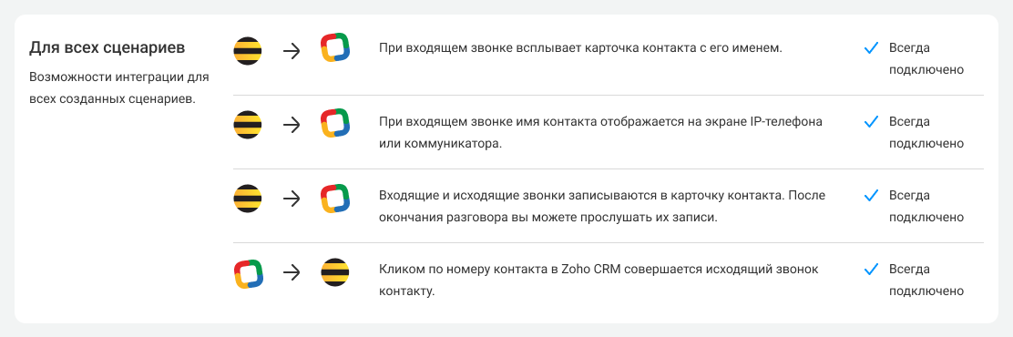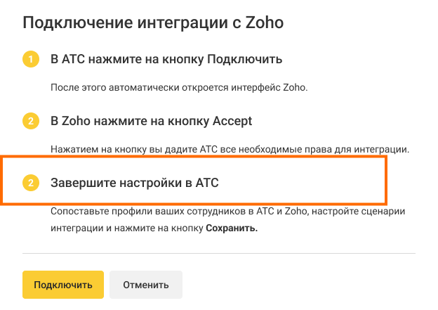 На этой странице описываются шаги по подключению и настройке интеграции Zoho CRM и АТС. Чтобы выполнить их, проверьте, что обладаете правами администратора в обеих системах.