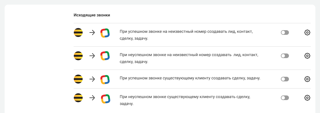Вы можете настроить сценарии интеграции отдельно для входящих звонков.